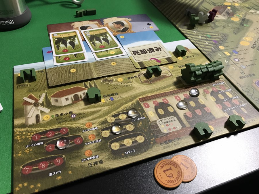- ワイン製造 がテーマで、ラウンドが進むと 収穫した葡萄や作ったワインが熟成されて価値が上がっていく のが、 フレーバーとしてもわかりやすいし体験としても嬉しい