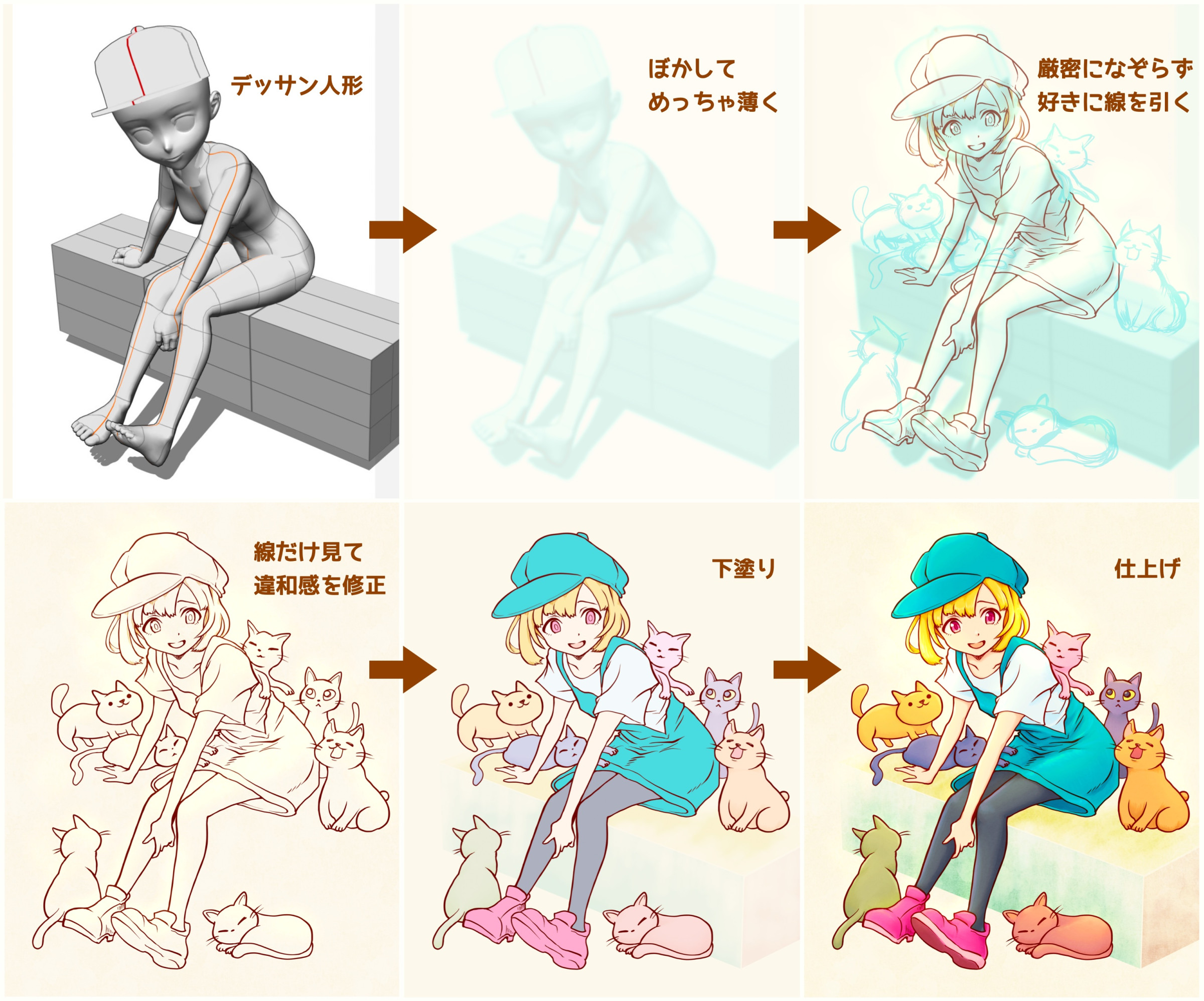 - 同一キャラを色んな角度で見たときの差分が学べる。横顔とか後ろ姿とか