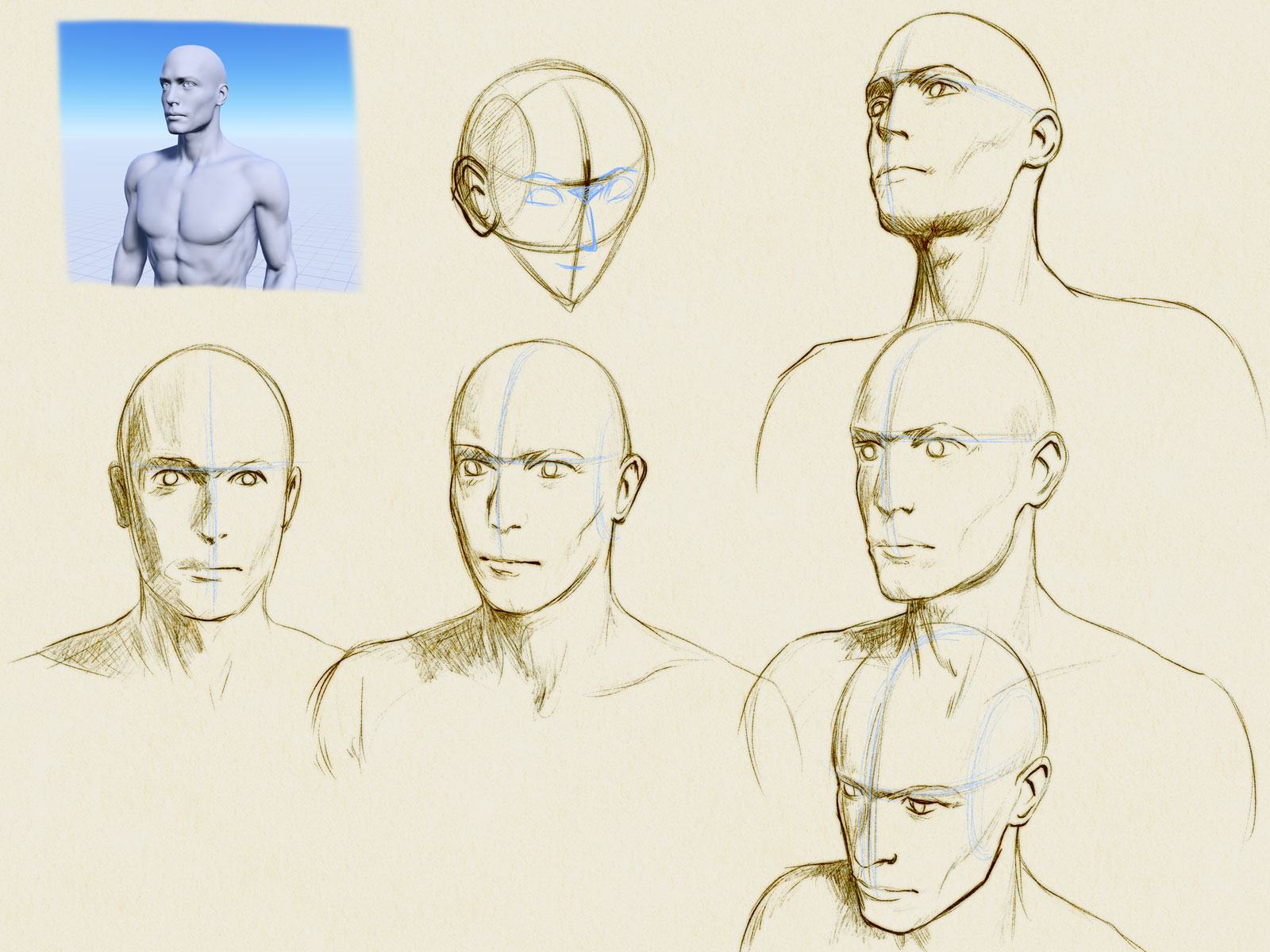 - 自分の絵の耳の位置や大きさに違和感を感じることが多かったので、Magic Poser というアプリで 3D モデルを見て観察