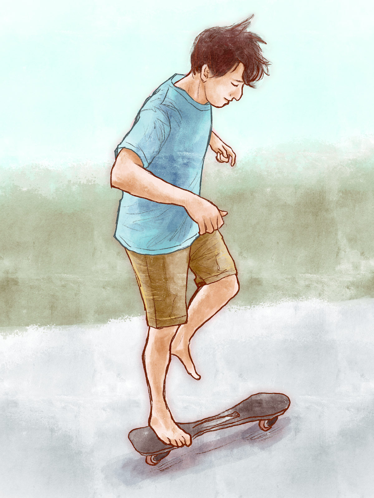 - 水彩ブラシで下地を薄く塗った後に鉛筆ブラシで質感を足してみる