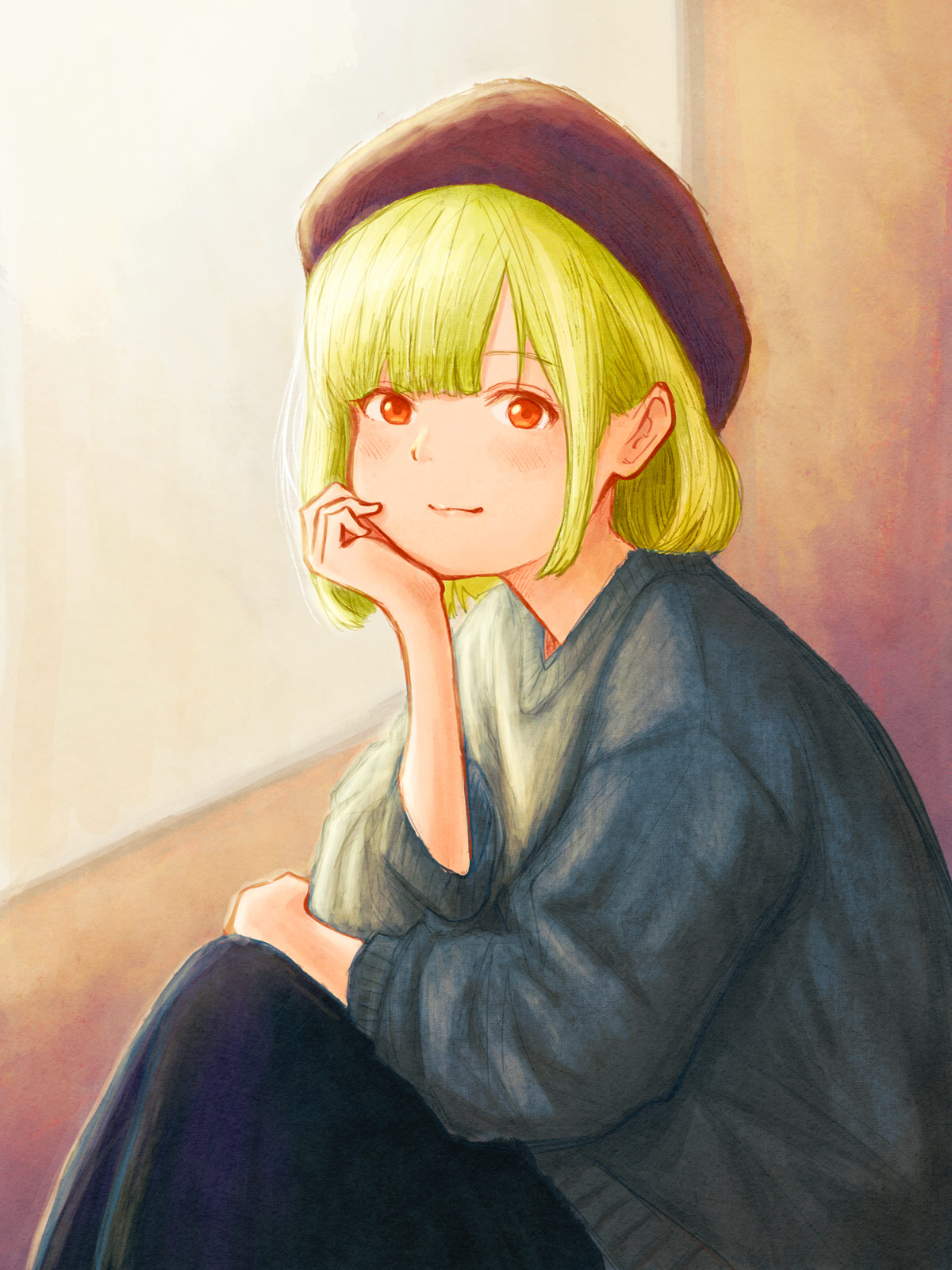 頬杖をつく人