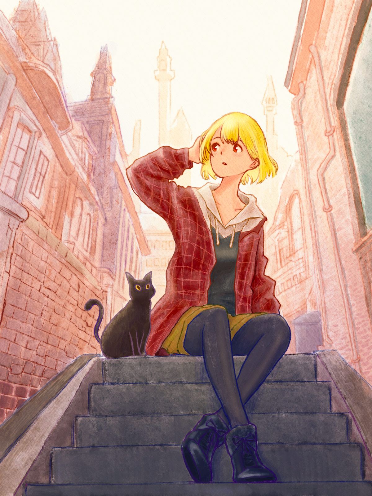 階段に座る人