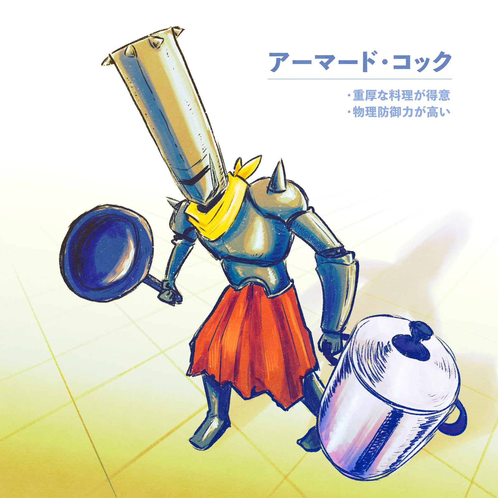 - 重装 x 料理人というモチーフがふと頭をよぎったので